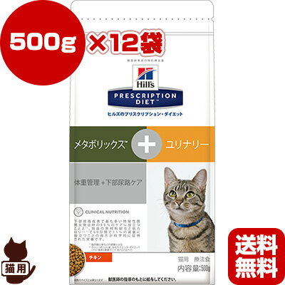 【送料無料】プリスクリプション・ダイエット 猫用 メタボリックス+ユリナリー ドライ 500g×12袋 日本ヒルズ ▼b ペット フード 猫 キャット 療法食