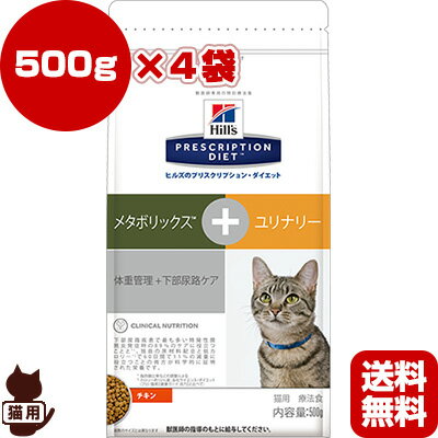 【送料無料】プリスクリプション・ダイエット 猫用 メタボリックス+ユリナリー ドライ 500g×4袋 日本ヒルズ ▼b ペット フード 猫 キャット 療法食