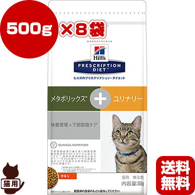 【送料無料】プリスクリプション・ダイエット 猫用 メタボリックス+ユリナリー ドライ 500g×8袋 日本ヒルズ ▼b ペット フード 猫 キャット 療法食